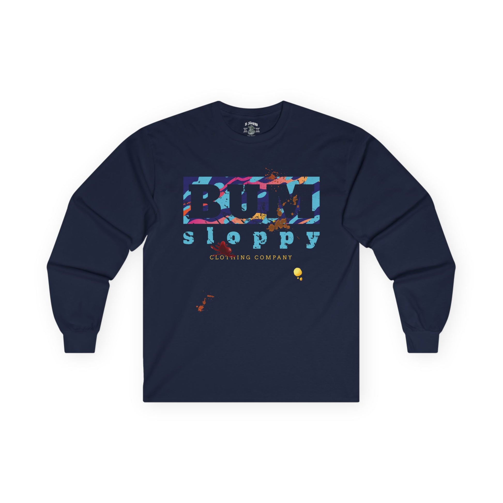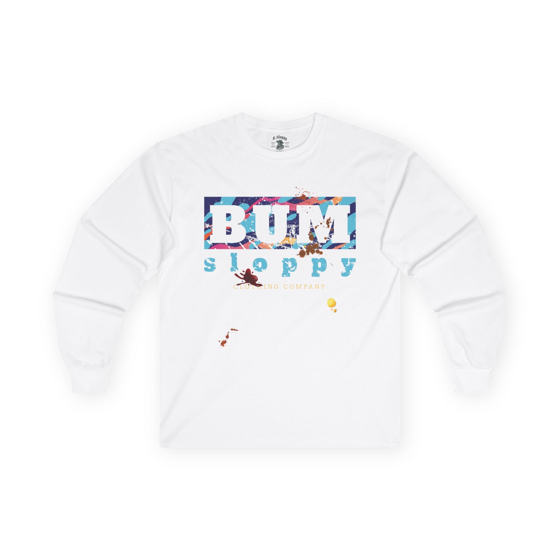 We're not bums, we're Bum Sloppy and our unisex long sleeve tee fits like a well-loved favorite that you'll want to wear over and over and over. Casually elegant with an excellent quality print, it is an irreplaceable everyday item for anyone. Long sleeves help keep your blood warm in cold weather. Comes in White, Black, Sport Grey, Navy, Light Pink, & Red. Wear your stains with pride!