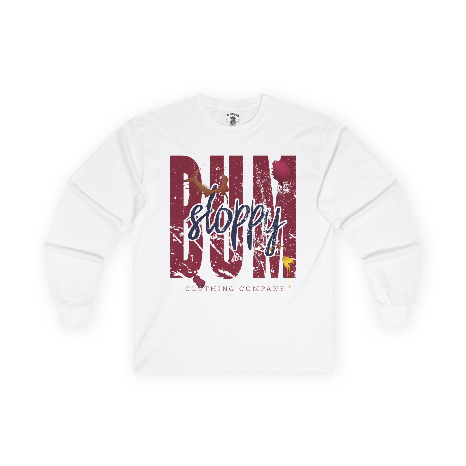 We're not bums, we're Bum Sloppy and our unisex long sleeve tee fits like a well-loved favorite that you'll want to wear over and over and over. Casually elegant with an excellent quality print, it is an irreplaceable everyday item for anyone. Long sleeves help keep your blood warm in cold weather. Comes in White, Black, Sport Grey, Royal, Navy, Purple, Light Pink, & Red. Wear your stains with pride!