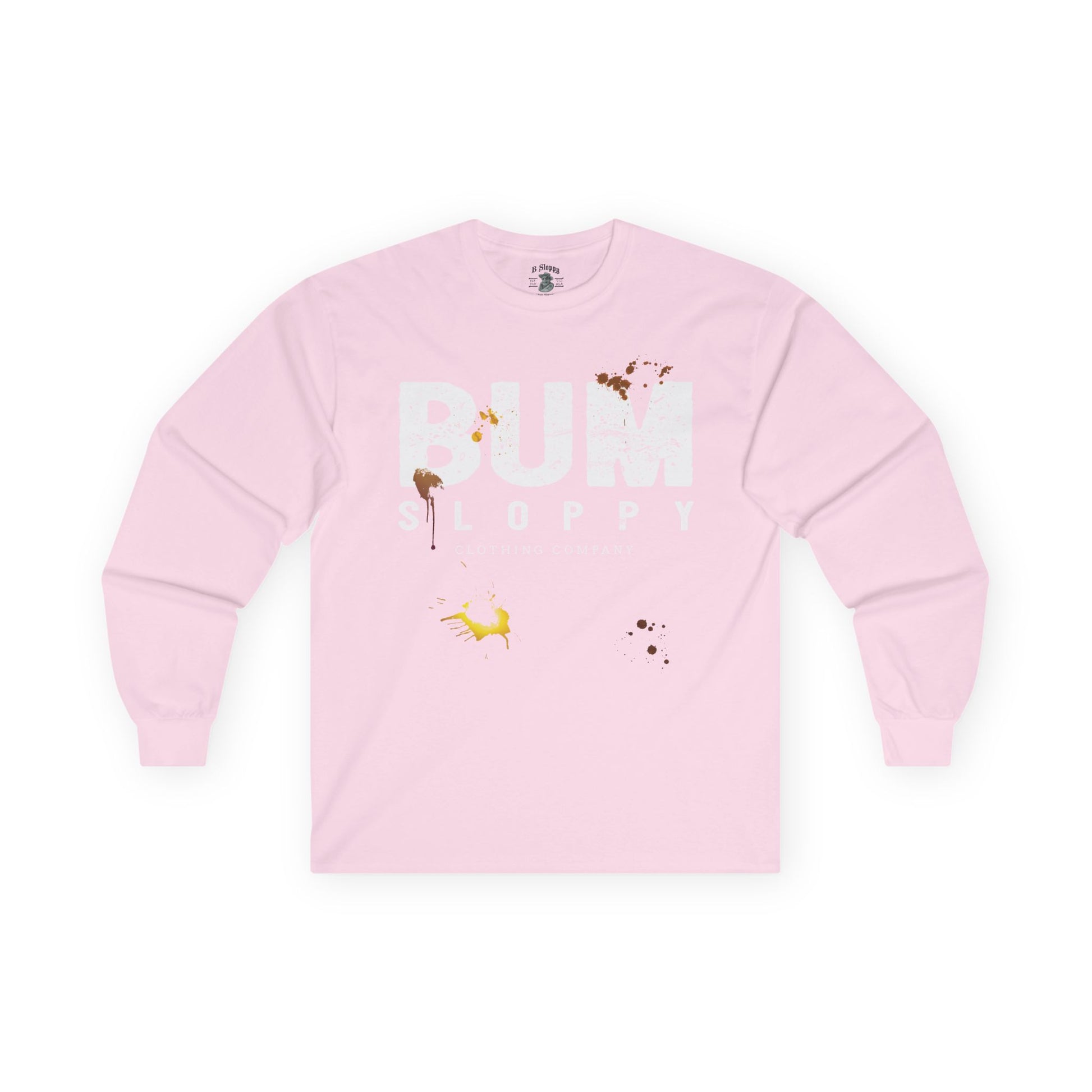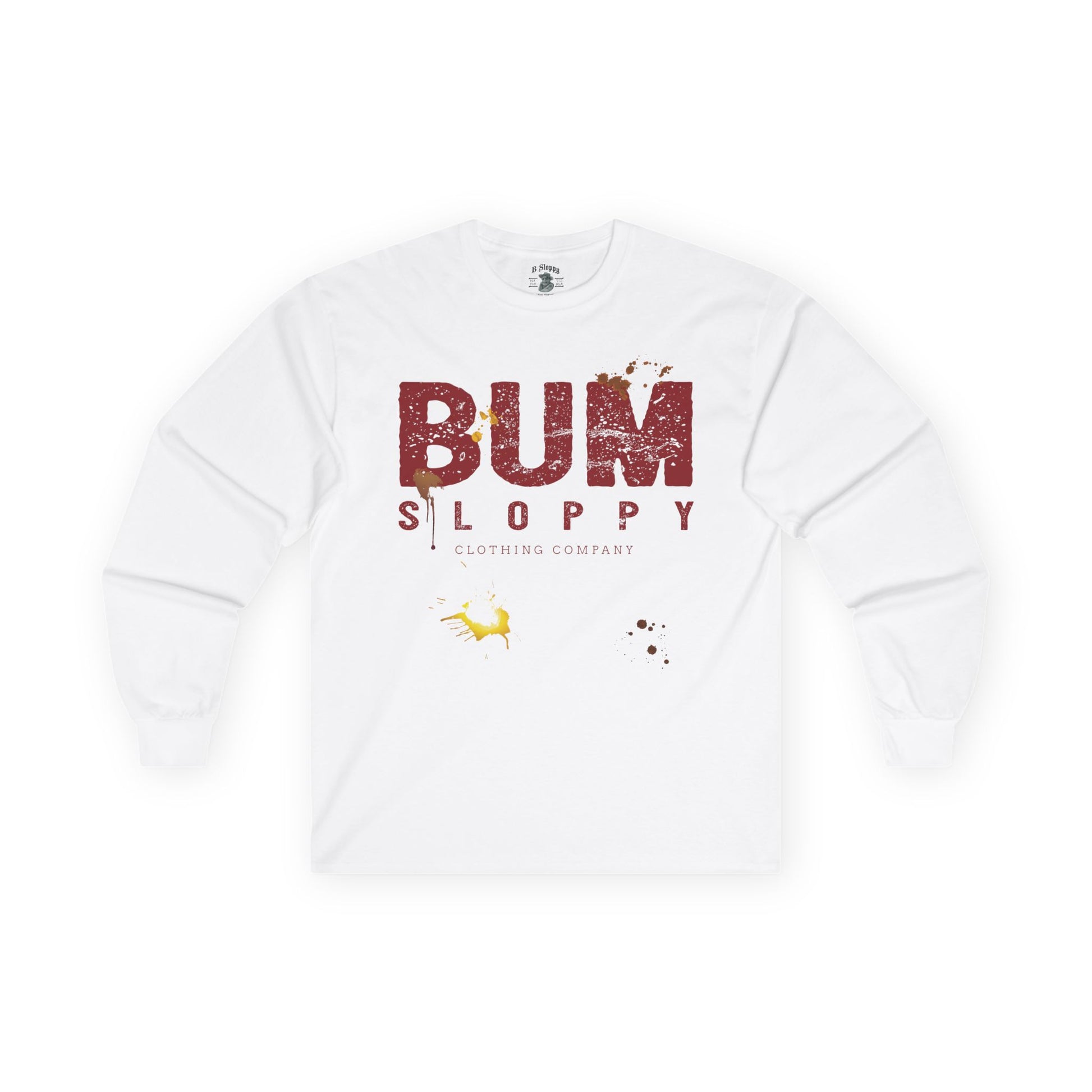 We're not bums, we're Bum Sloppy and our unisex long sleeve tee fits like a well-loved favorite that you'll want to wear over and over and over. Casually elegant with an excellent quality print, it is an irreplaceable everyday item for anyone. Long sleeves help keep your blood warm in cold weather. Comes in White, Black, Navy, Royal, Sport Grey, Red, & Light Pink. Wear your stains with pride!
