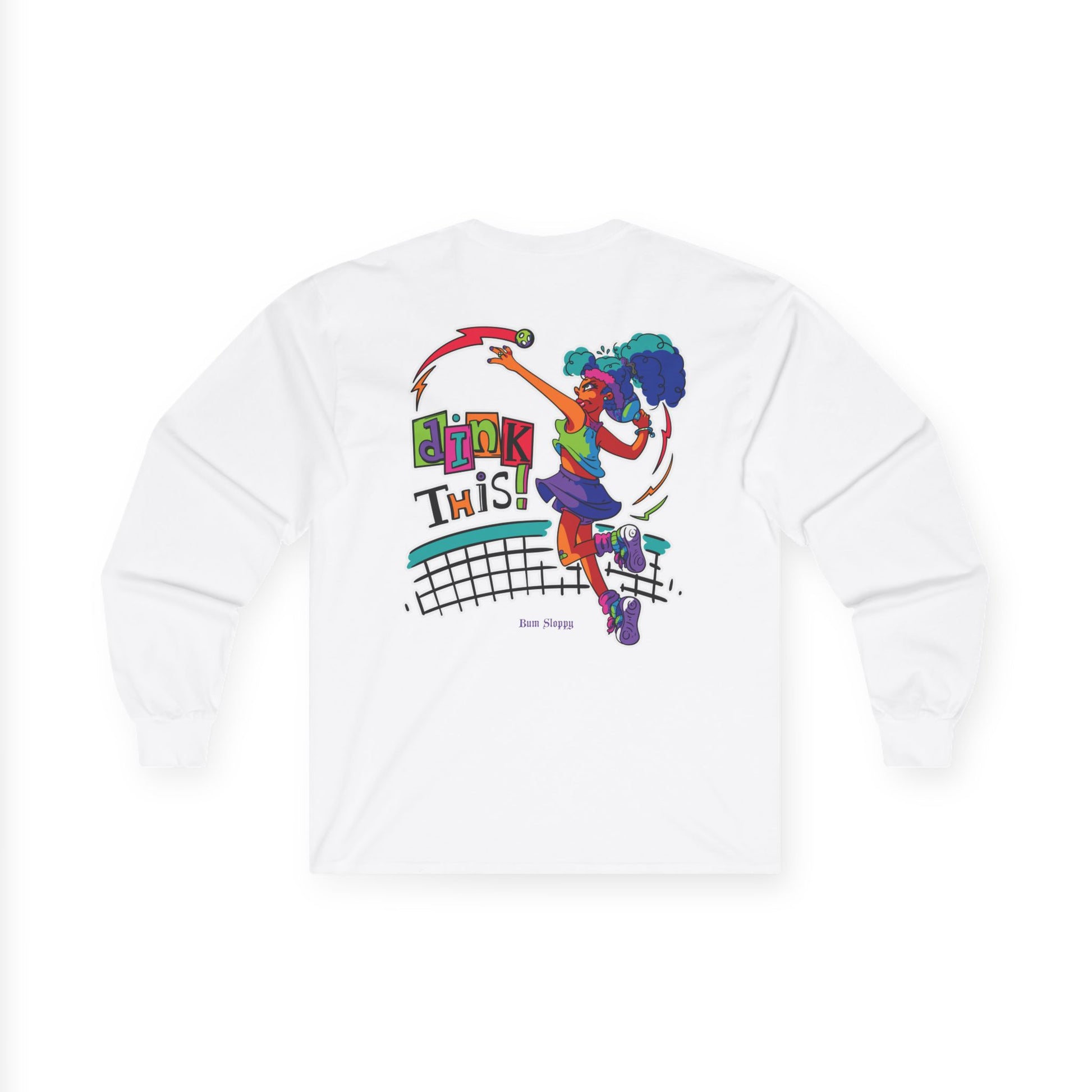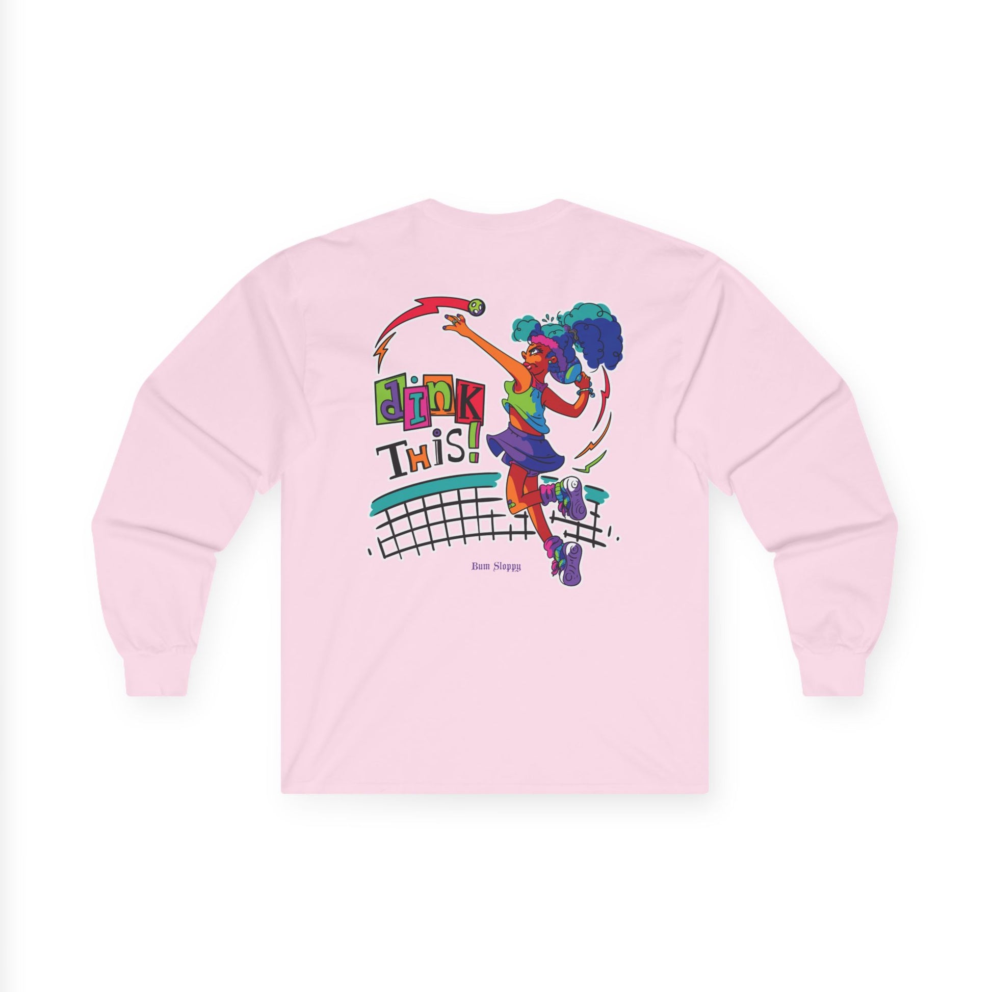 No-Holds Neon Women's Dink This! Long Sleeve Pickleball Tee with Pickleball Strike Marks